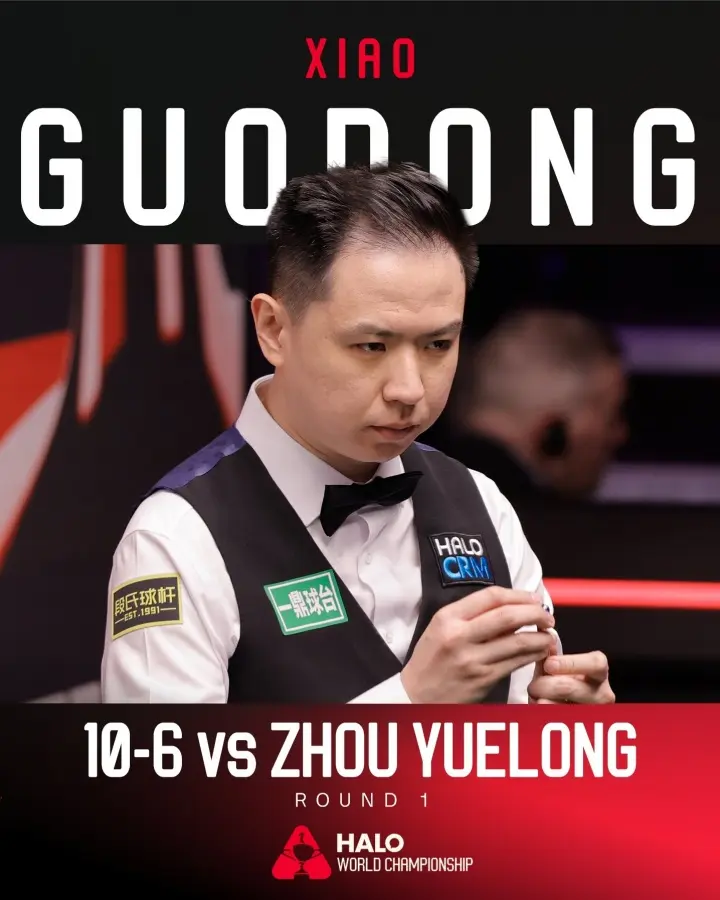 肖国栋打出三杆单杆破百,大比分10-6周跃龙,连续两年晋级16强,去年决胜局遭遇希金斯。