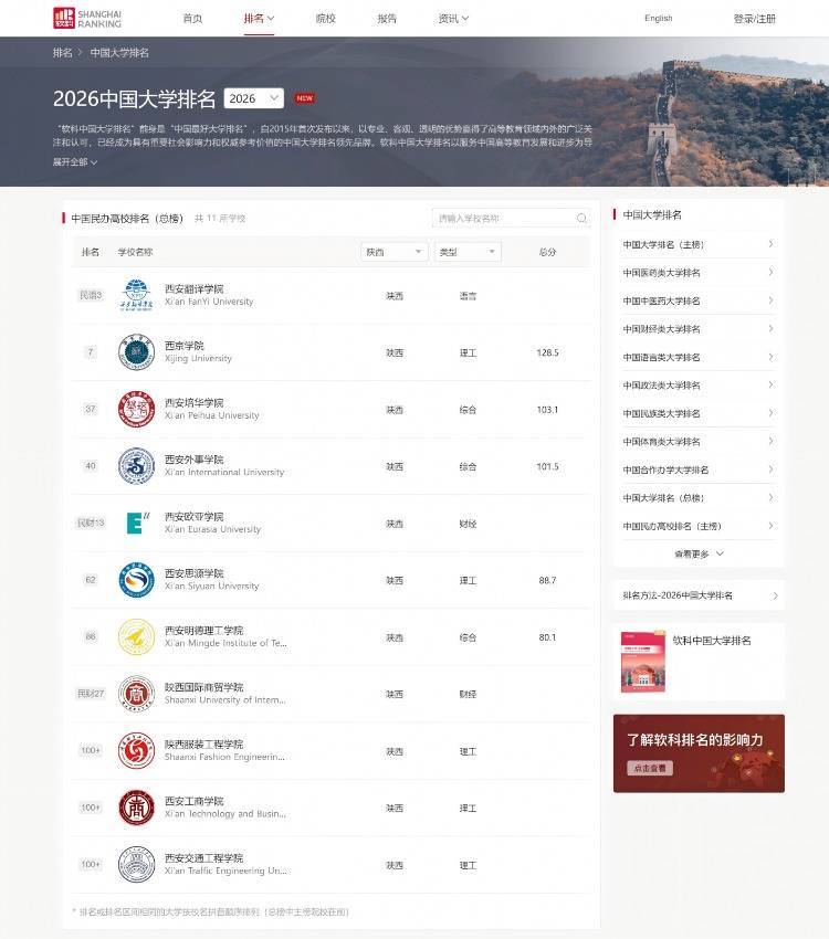 在最新公布的软科中国大学排名里,陕西省各民办高校在榜单内也都取得了不俗的成绩,从整体看,陕西民办高校整体发展均衡度高、办学基础扎实,各院校办学定位各有侧重、发展赛道各不相同,共同构筑了陕西民办高教多元发展、多点开花的良好格局,但最亮眼的当属西安翻译学院。